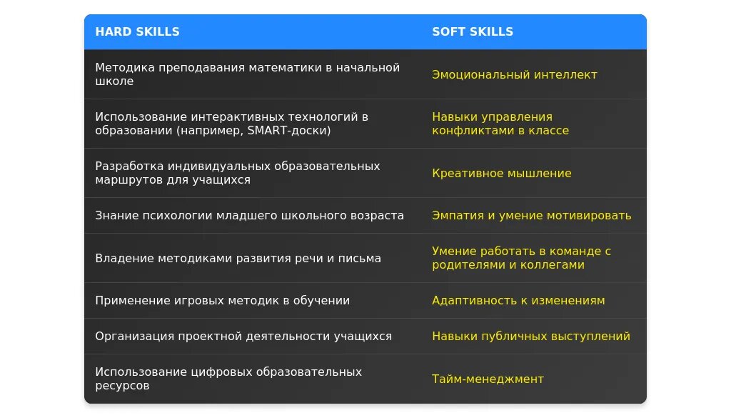 При анализе вакансии для педагога начальных классов важно выделить ключевые требования, которые работодатель считает обязательными. Это может быть образование (например, высшее педагогическое), опыт работы с детьми, знание современных образовательных методик или владение дополнительными навыками, такими как работа с интерактивными досками. Обращайте внимание на формулировки: если требования указаны как "обязательно", это означает, что без них кандидатура не будет рассмотрена. Если же требования указаны как "желательно", это возможность выделиться среди других кандидатов.