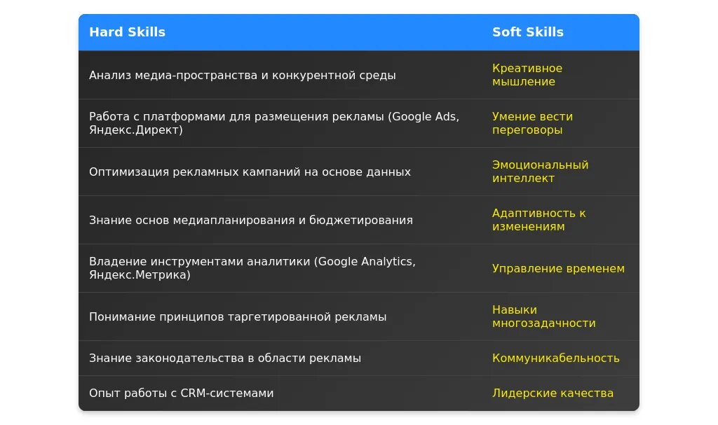 Перегруппируйте навыки, чтобы выделить те, которые соответствуют вакансии. Например, если вакансия требует знания CRM-систем, добавьте их в начало списка. Работайте с ключевыми словами, такими как "аналитика данных", "Google Ads", "управление бюджетами".