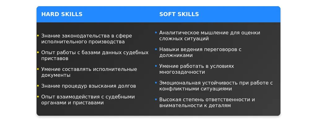 Вакансия 3: "Юрист по исполнительному производству с опытом работы от 1 года. Обязательное условие — умение работать в команде и стрессоустойчивость." Здесь акцент на личные качества.
