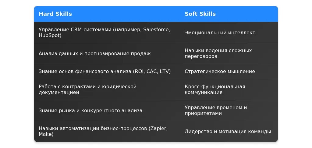После адаптации: "Опыт работы с CRM (Bitrix24, Salesforce), навыки аналитики и ведения переговоров."