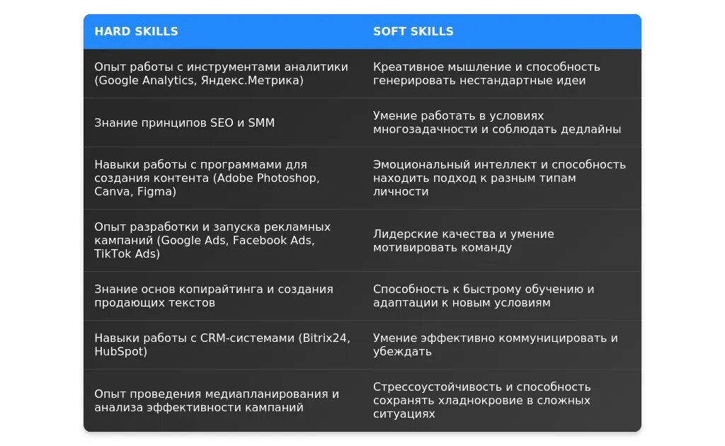 - Делайте акцент на базовых навыках: работа с соцсетями, копирайтинг, основы аналитики.