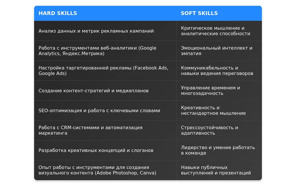 Soft skills — это личные качества, которые помогают эффективно работать в команде и достигать целей. Для специалиста по рекламе и PR особенно важны: