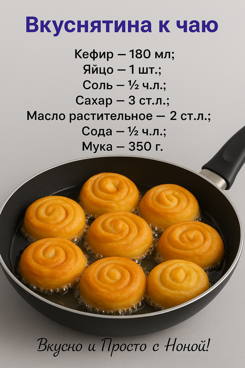 Стакан кефира и 1 яйцо. Готовлю за 30 минут целую гору вкуснятины к чаю😋 ✅Готовим: В миску с кефиром разбиваем яйцо, высыпаем соль и сахарный песок, вливаем растительное масло, перемешиваем. Добавляем в кефир соду, перемешиваем. Сода должна вступить в реакцию с кефиром. Высыпаем в кефир муку, замешиваем тесто. Полученное эластичное тесто оставляем на 20 минут в тепле под пленкой. Раскатываем тесто в пласт толщиной 2-3 мм. Сворачиваем пласт в рулет, нарезаем на небольшие рулеты толщиной около 1,5 см. В сковороде на 200 мл растительного масла обжариваем данные оладьи с обеих сторон до золотистого цвета на медленном огне. Получаются простые оладьи по новому рецепту.