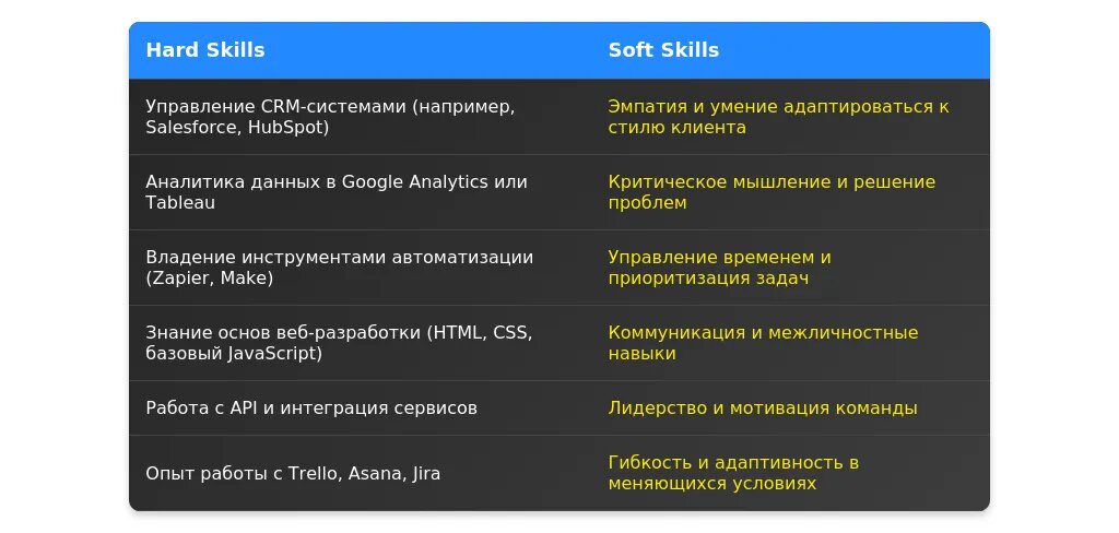 Пример адаптации навыков: "Навыки работы с офисными программами." -> "Опыт работы с CRM-системами и инструментами автоматизации."