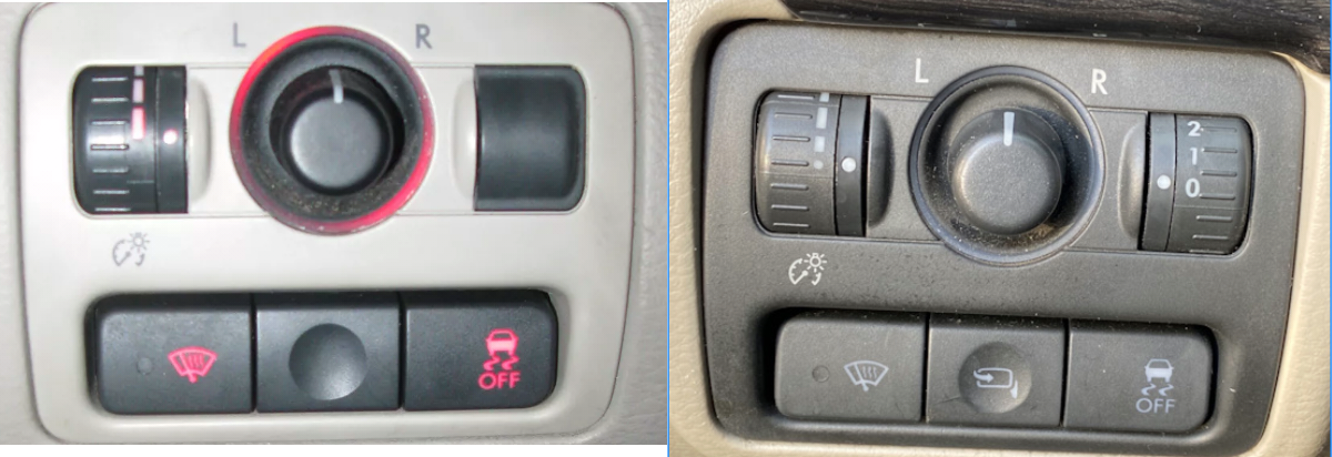 От времени перестал работать регулятор яркости приборной панели и не регулировал яркость как это было раньше, что на езду конечно не влияет но очень сильно раздражает. Поэтому первое, что было препринято это найти на авторазбоках, но к моему удивлению оказывается их два вида. Отличаются они присутсвием одного контакта, который отвечает за максимальную яркость. Как можно видеть на изображении слева регулятор яркости без точки (далее вариант1) и справа с точкой и деления разной длиной (далее вариант2). Как раз вариант2 имеет дополнительный контакт. Кроме внешнего отличия и наличия дополнительного контакта отличается немного разницой в работе. Вариант1 - даже при самом ярком варианте при включении габаритов делает чуть темнее приборную панель чем когда габариты выключены. Вариант2 - при включении габаритов не изменяет яркость приборной панели (шкал и экранчиков пробега и бортового компьютера). Так же отличаются они и немного внутри, наличием дополнительной группой контактов на колесике и