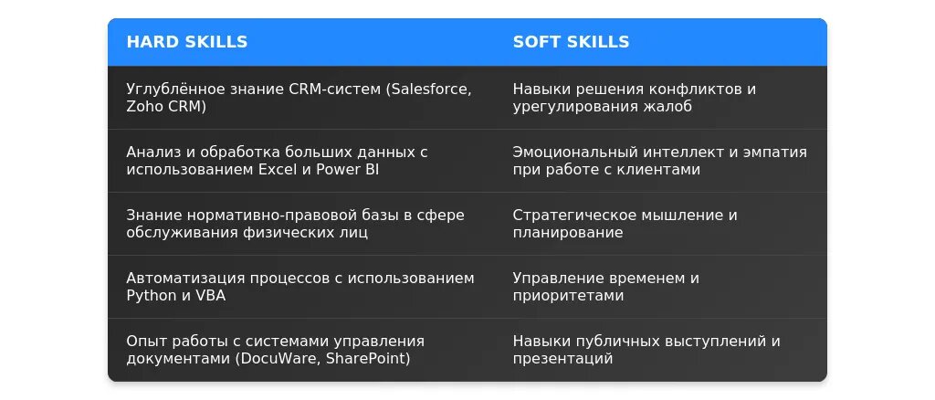 Анализ требований вакансии для профессии "ведущий специалист по обслуживанию физических лиц"