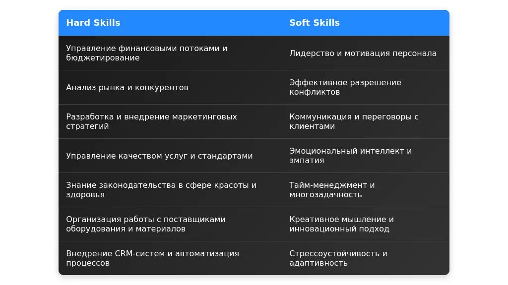 На что делать акцент: организаторские способности, коммуникабельность, внимание к деталям, базовые знания в индустрии красоты.