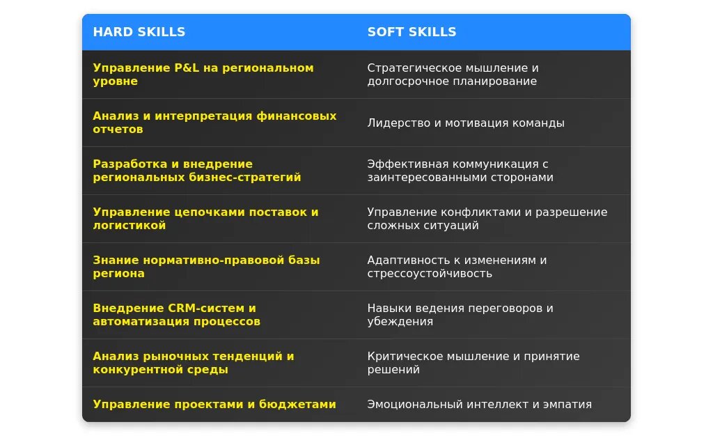 После адаптации: "Управление региональными командами, работа с бюджетами, знание CRM-систем, стратегическое планирование."