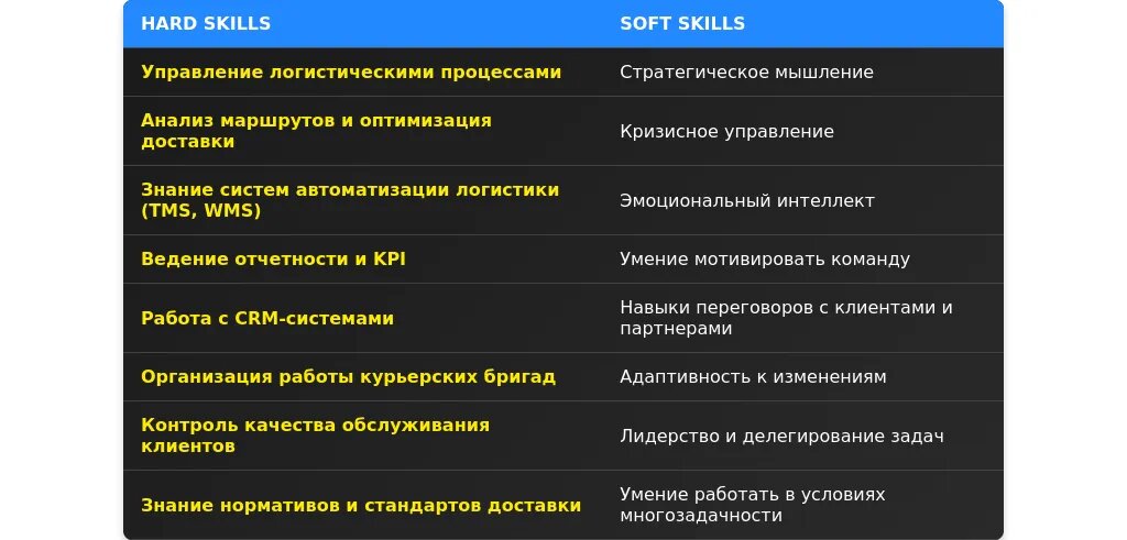 После адаптации: "Управление командой курьеров, оптимизация маршрутов доставки, работа с CRM-системами."