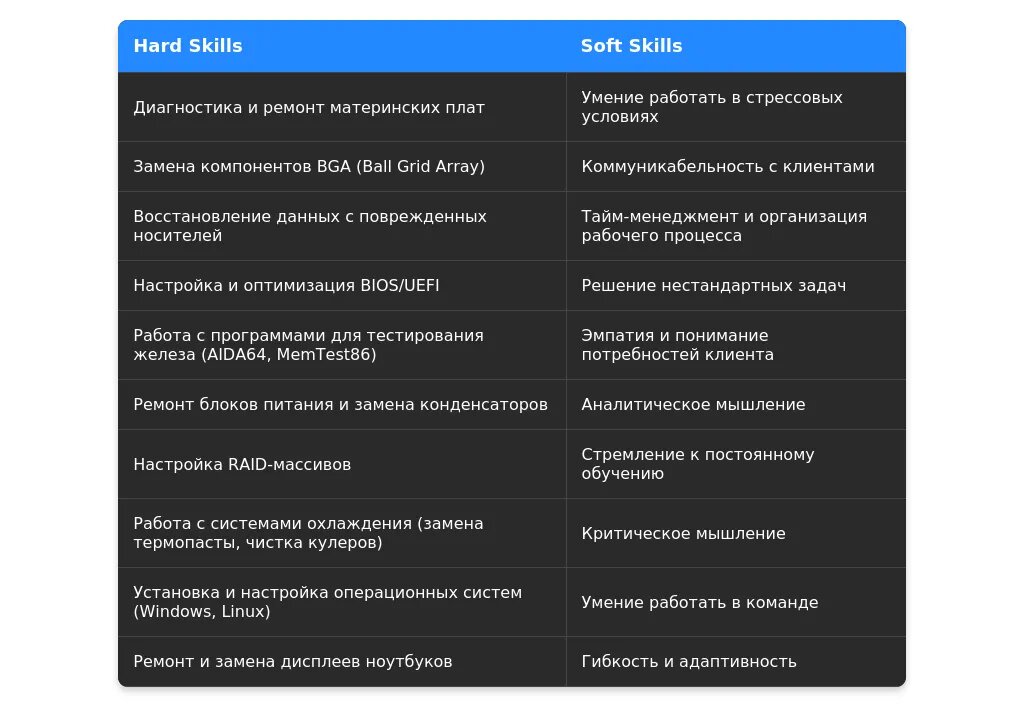 - Более 5 лет опыта в ремонте и настройке ПК, включая работу с серверным оборудованием.