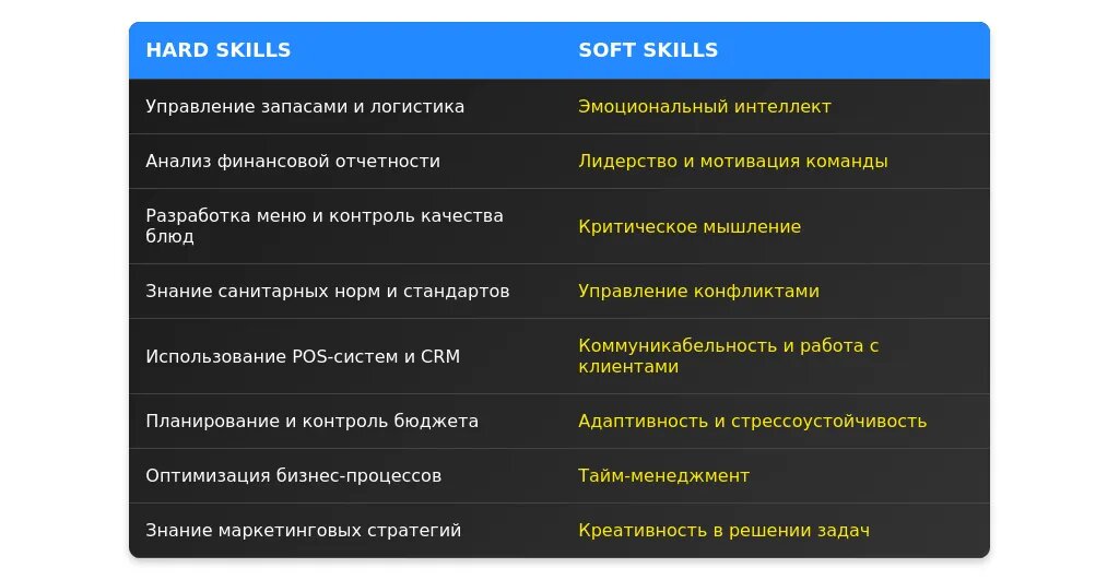 После адаптации: "Управление персоналом (20+ человек), контроль закупок и бюджета, знание 1С и R-Keeper, организация мероприятий."