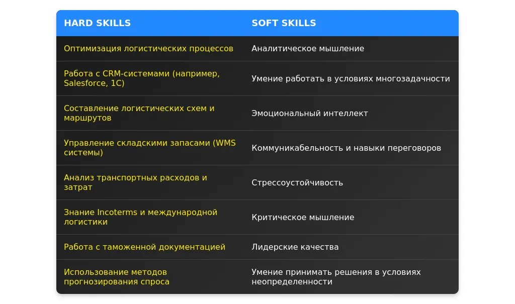 - Актуальные hard и soft навыки, востребованные в логистике.