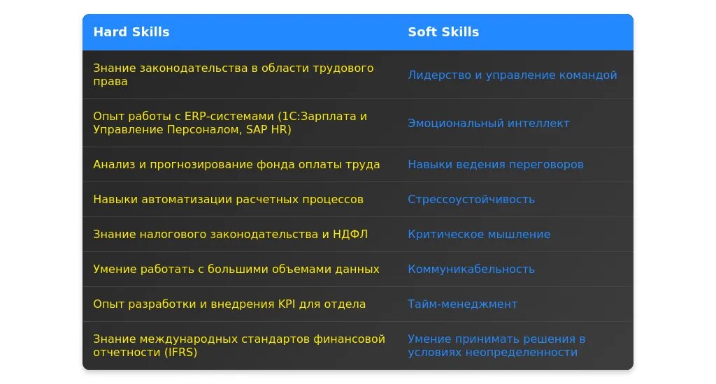 - Уникальные компетенции: Например, опыт работы с международными системами расчета зарплаты.
