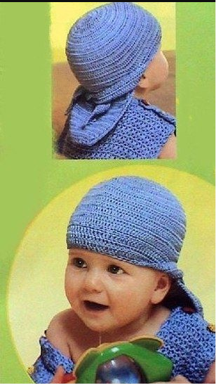 Вяжу внуку бандану, это моя любимая модель. Она и голову от солнца прикрывает, и завязки помогают шапочке надежно держаться на голове, и шейку сзади прикрывает от излишнего загара. Правда, у меня шапочка ажурная, донышко связала по этой схеме: И свяжу, скорее всего, не одну такую, уж очень удобная модель. Такую бандану можно связать и взрослым, и не только крючком. Если связать красивыми ажурами примерно по такой же схеме, получится женский повойник: ___________________________________________________________________________ Попался на глаза интересный головной убор: (Видео на румынском языке youtube.com/watch?v=qq3jMQmuY4A) Технические подробности вязания накидки крючком: Размер и количество рядов можно регулировать по желанию, ориентируясь на размер головы и желаемую длину накидки Сначала завязываем внизу: Затем вверху: И снова внизу: А здесь просто белая: