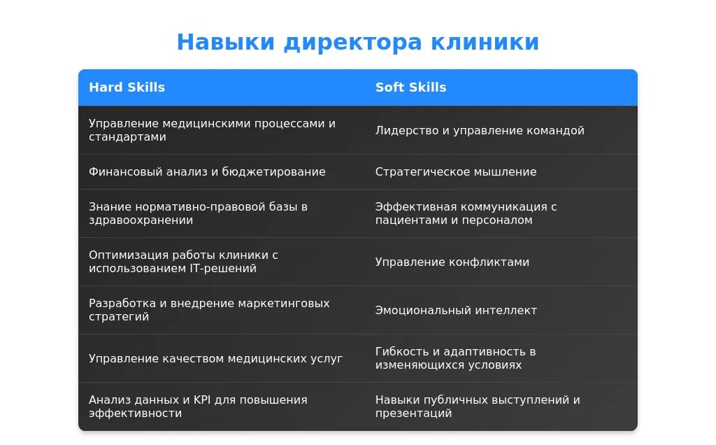 Стратегическое мышление: разработал и внедрил 5-летний план развития клиники, увеличив доход на 30%.