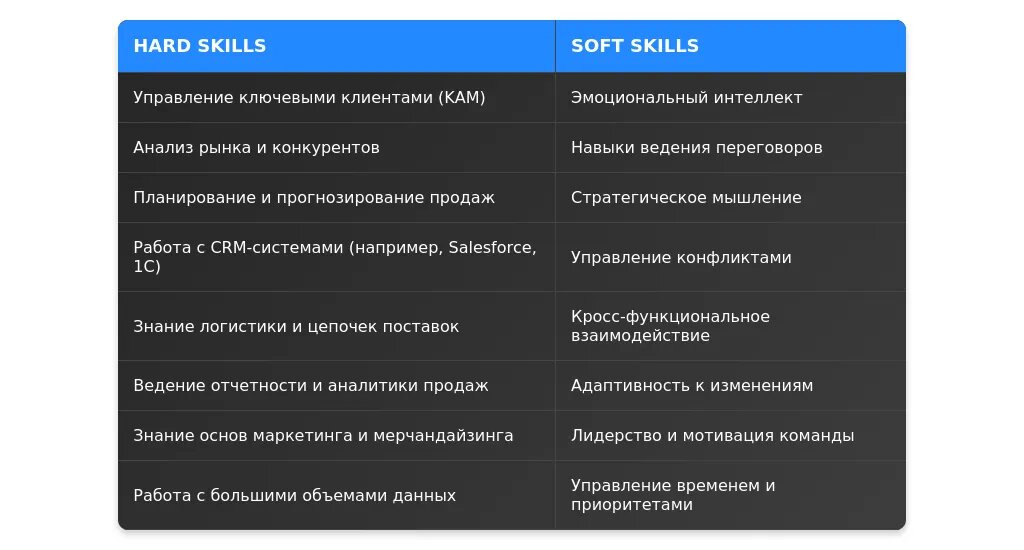 После: "Навыки B2B-продаж, управление командой, аналитика продаж в CRM."