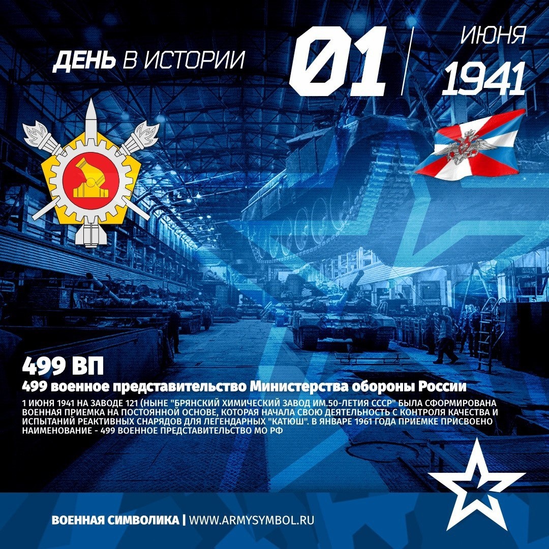499 ВП с 1941 499 военное представительство Министерства обороны России 1 июня 1941 на заводе 121 (ныне "Брянский химический завод им.50-летия СССР" была сформирована военная приемка на постоянной основе, которая начала свою деятельность с контроля качества и испытаний реактивных снарядов для легендарных "Катюш". В январе 1961 года приемке присвоено наименование - 499 военное представительство МО РФ #ПамятныеДатыВоеннойИсторииОтечества #ДеньВИстории #ГодЗащитникаОтечества #80ЛетВеликойПобеды Источник: https://vk.com/wall-60767131_30787 Подпишитесь на наши группы ВКонтакте и в Одноклассниках - читайте, смотрите и комментируйте! Источник