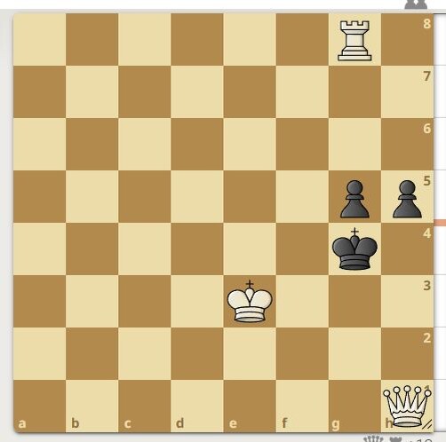 Автор задачи В. Севастьянов, 2005 год. Вот интересная шахматная задача: в классической расстановке, когда король располагается впереди двух пешек, белые обладают ладьёй и ферзём. Представьте себе такую позицию — король чуть смещён вперёд, а перед ним расположены пешки. В арсенале белых сильные фигуры: ферзь и ладья, готовые к атаке или защите.