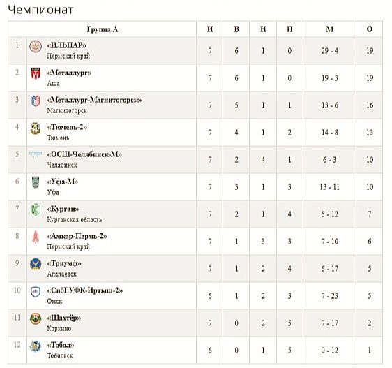 Турнирная таблица после окончания 7 тура чемпионата России по футболу 3 дивизиона зоны Урала и западная Сибирь