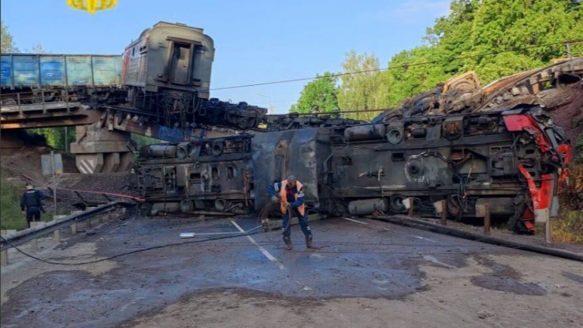Кадры опубликовала Московская транспортная прокуратура. Александр Хинштейн сообщил о происшествии в 7:18 утра. На 48-м километре трассы Тросна-Калиновка в Железногорском районе произошло ЧП — обрушился железнодорожный мост во время прохождения грузового состава. В результате часть поезда рухнула на проезжую часть автомобильной дороги, расположенную под путепроводом. На месте происшествия возник пожар в тепловозе, который оперативно ликвидировали прибывшие спасатели. Остальные вагоны остались на железнодорожном полотне. По предварительным данным, один из машинистов получил травмы ног. Всю локомотивную бригаду госпитализировали, сейчас за их состоянием следят врачи. Автодорога под мостом полностью перекрыта для движения, транспорт пускают по объездным путям. Специалисты выясняют причины обрушения конструкции.