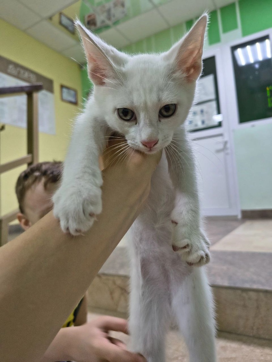 #Астрахань Подбросили котенка. Котенок чистенький, ушки в том числе. Белоснежный окрас, пол-мальчик, район 11 кр армии , ЖД больница, Маркина 89608653941 Юлия