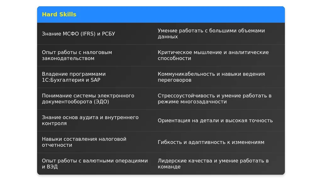 ✅ Стрессоустойчивость: работа в условиях сжатых сроков сдачи отчетности.