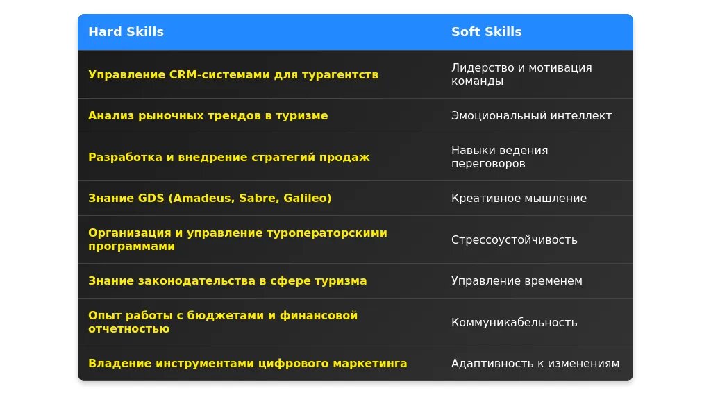 - Список актуальных навыков в туристическом бизнесе.