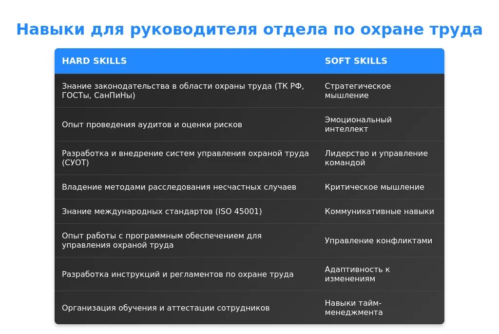 Технические навыки для руководителя отдела по охране труда