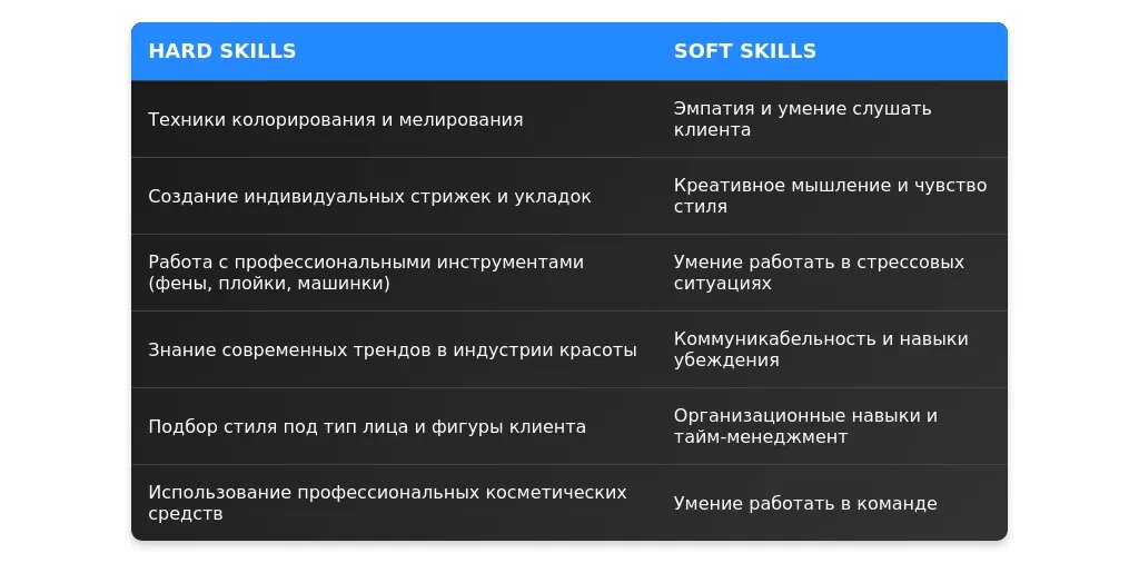 - Навыках, полученных в ходе обучения или практики.