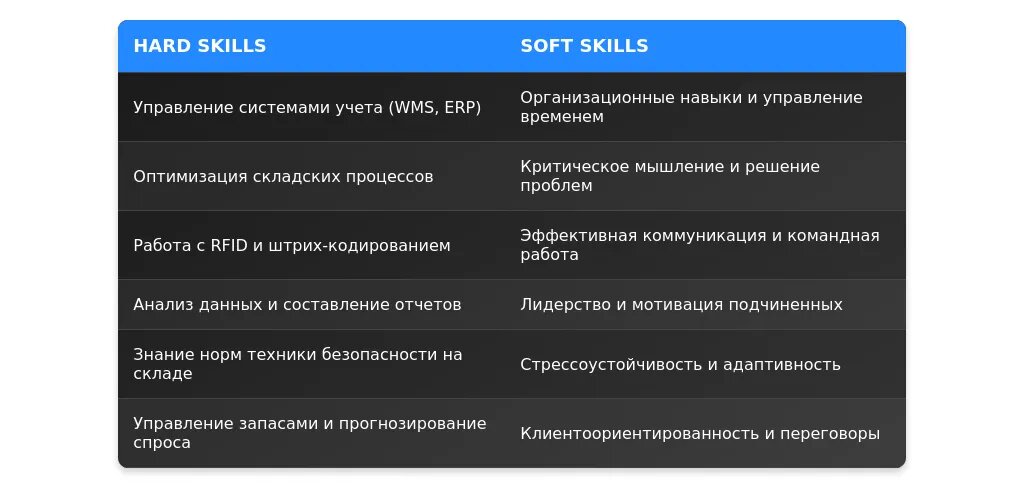 Сильные стороны: навыки работы с WMS, акцент на ответственность и организацию.