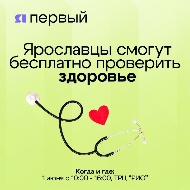 ❤️ Здоровье – самое дорогое, что у нас есть! Поэтому за ним нужно тщательно следить. Уже сегодня жители Ярославля смогут пройти экспресс-обследование организма. Что можно будет проверить⤵️ ❤️уровень глюкозы и холестерина в крови, ❤️экспресс-тест на ВИЧ, ❤️спирометрию, ❤️уровень угл. газа в выдыхаемом воздухе, ❤️вес и индекс массы тела, ❤️уровень артериального давления, ❤️внутриглазное давление, ❤️УЗИ щитовидной железы ❤️флюорография и маммография ❤️получить консультацию терапевта, фтизиатра и пульмонолога 📍 Когда и где: 1 июня с 10 до 16 часов, ТЦ «РИО». Не забудьте взять с собой паспорт! 💚 Подписаться | Прислать новость