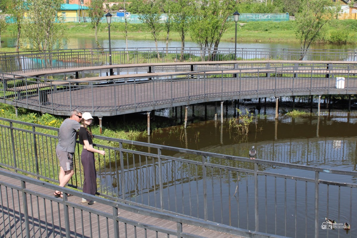 Про то, что прогулялись по мосту в музейном комплексе Соликамска, написала, а показать не показала. Исправляюсь) За насыщенной птичьей жизнью здесь можно наблюдать часами.