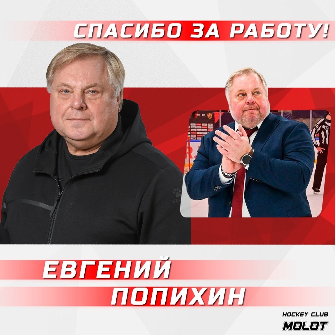 📰Новости ВХЛ 🔚У «Молота» будет новый главный тренер. Евгений Попихин официально покинул команду Также тренерский штаб пермского клуба покинул старший тренер Андрей Никишов. Специалисты возглавили команду по ходу сезона 2024/2025. Под их руководством «Молот» занял девятое место по итогам регулярного чемпионата ВХЛ и в четвертый раз подряд пробился в плей-офф, где уступил в первом раунде челябинскому «Челмету». 📸Хоккейный клуб «Молот» @nhockey