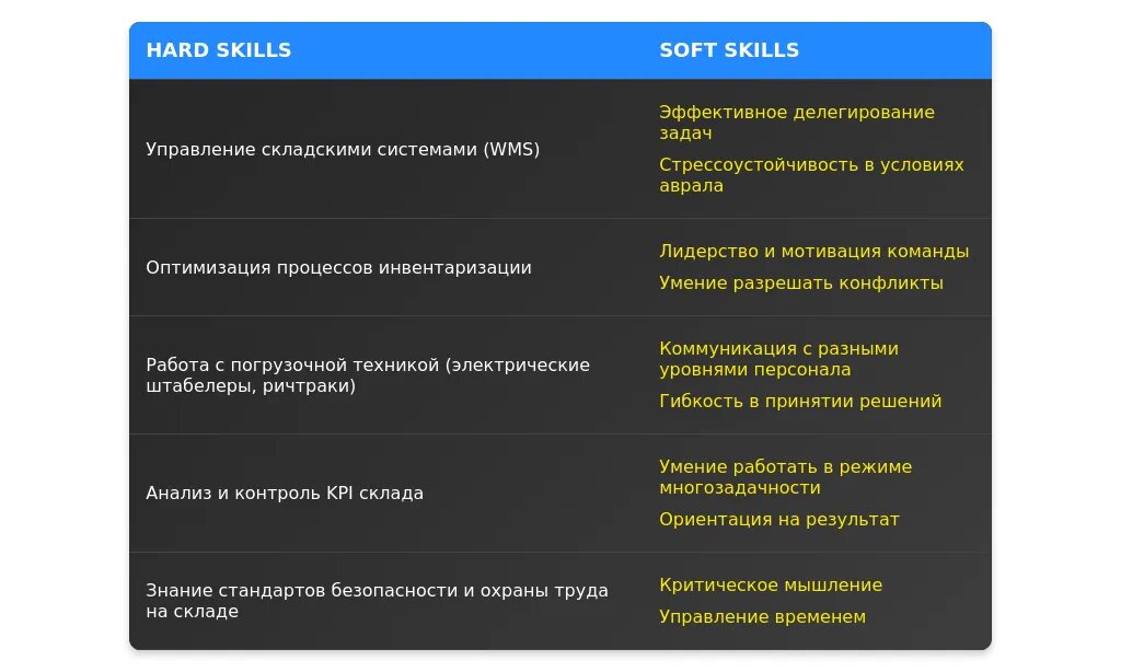 Анализ требований вакансии для профессии "старший смены склада"