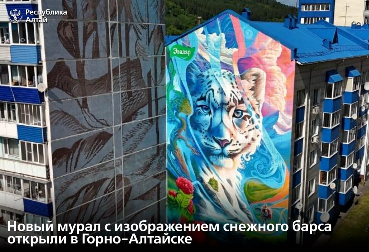 Новый мурал, главным героем которого стал снежный барс, открыли в Горно-Алтайске