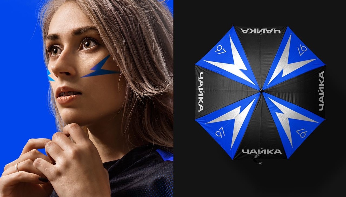 Описание концепции «Чайка» – нетипичный футбольный клуб: во-первых, это частный клуб, во-вторых, это андердог из села в Ростовской области, который сумел пробиться в ФНЛ, вторую по значимости лигу российского футбола. «Чайка» исповедует современный подход к футболу, поэтому мы решили отказаться от типичной футбольной геральдики и создали айдентику, которая не просто выделяется на фоне других футбольных клубов, но и отражает ценности и дух ФК «Чайка»: острый, динамичный, неуступчивый, но готовый изменяться, не изменяя себе. Решение: ФК «Чайка» силен не за счет индивидуальных исполнителей, а за счет команды, поэтому стая стала основой новой айдентики. Логотип — образ атакующей чайки, стайность которой мы воплотили в визуальной коммуникации бренда через динамическое применение этого символа. Чайка, острая и устремленная к цели, в стиле работает не просто как статичный логотип, но как группа динамичных элементов, которые обыгрывают определенный сюжет: окружают противника, показывают цель