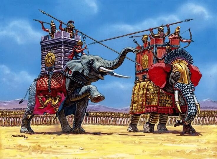 Позже идею переняли эллинистические государства, особенно Селевкиды и Птолемеи, а затем и Карфаген. Самый известный пример — поход Ганнибала через Альпы, во время которого он использовал слонов против Рима. Однако, вопреки распространённому мнению, слоны не стали решающим фактором в его кампании.