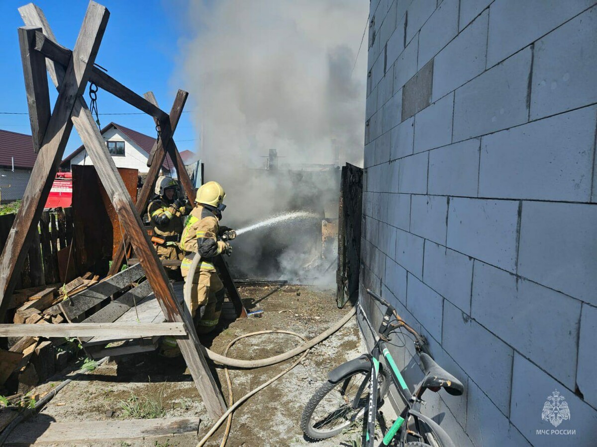 В городе Барнауле в поселке Центральный произошел пожар в частном гараже.