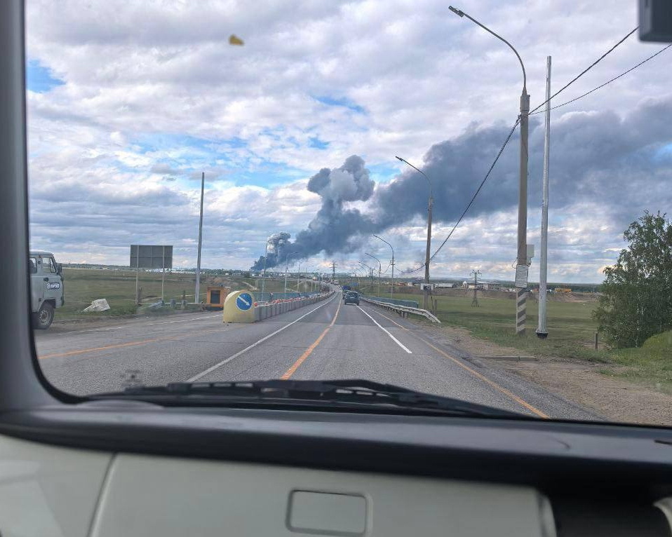 В Мурманской области недалеко от базы стратегической авиации «Оленья» раздались звуки взрывов, в небо поднимается столб черного дыма. Местные паблики выложили видео, снятое очевидцами, – утверждается, что атака производилась с фуры, которая была припаркована недалеко от заправки. «Приехал водитель, он бегает-мечется, у него из-под тена грузовика вылетают дроны в сторону аэродрома. Его повязали ГАИшники. Он говорит – «мне сказали точку, куда приехать, где должны встретить, и тут дроны вылетают один за одним», – объясняет автор ролика. Одновременно пришло известие об аналогичной атаке на военный аэродром в Усольском районе Иркутской области, где также базируются «стратеги». Очевидцы также публикуют фото пожара. Предполагается, что вражеские дроны там тоже были запущены с грузовика. Попытка удара дронами по военному аэродрому зафиксирована и в Рязани. Украинские паблики сообщают, что диверсии – часть масштабной операции СБУ «Паутина». Также публикуются кадры поражения самолетов, якобы сня