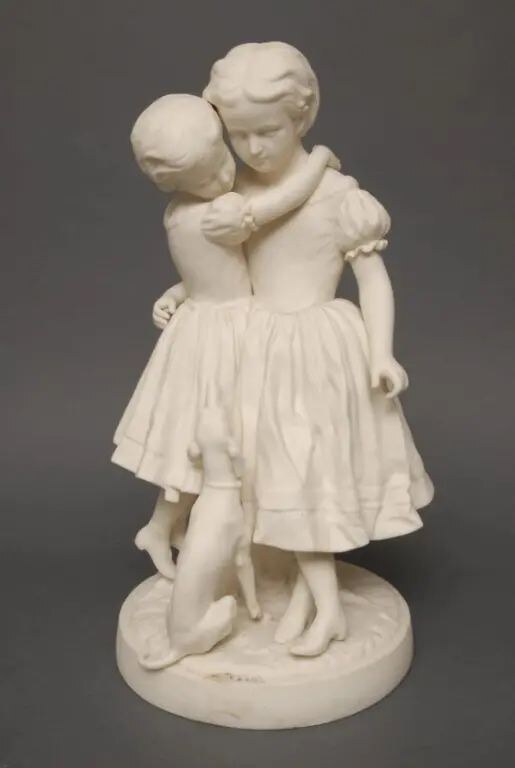 #Музейныйкалендарь Поздравляем с Днем защиты детей! Международный день защиты детей отмечается ежегодно 1 июня, учреждён в ноябре 1949 года в Париже решением конгресса Международной демократической федерацией женщин, впервые отмечался в 1950 году. В этот день, по традиции, проходят мероприятия, призванные привлечь внимание к охране прав ребёнка. ⭐️Скульптурная группа "Две девочки и собака" Швеция. Керамическая фабрика в Густавсберге 1880-е-начало ХХ в. Бисквит