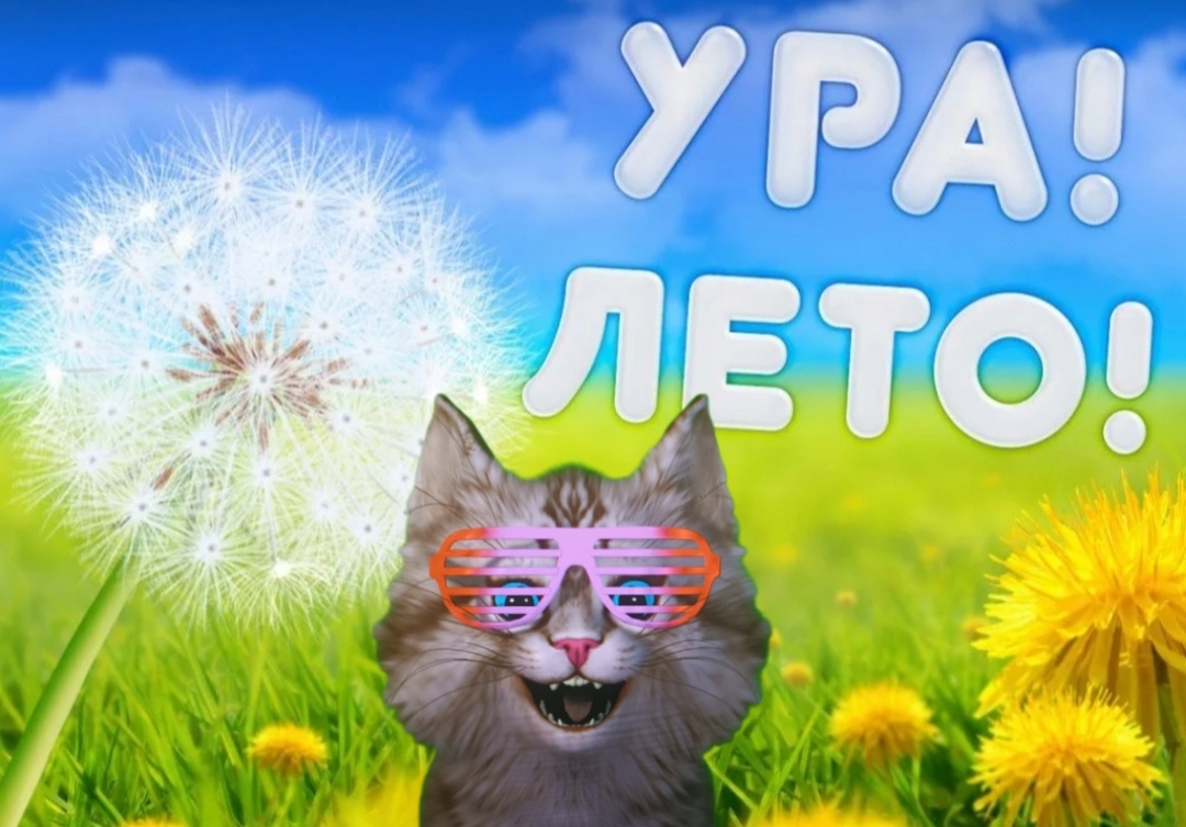 Привет котики обормотики! Поздравляю с первым днём лета! Хорошо вам отдохнуть коты! С летними каникулами! Ураааа! 😘🥳😸