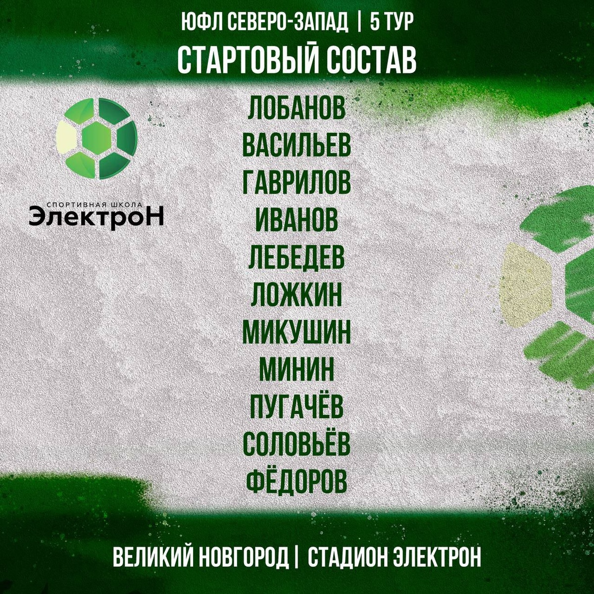 Стартовый состав СШ «Электрон» 2009 года на матч » СШОР 5 Калининград » рождения, верим в победу и держим кулачки ✊