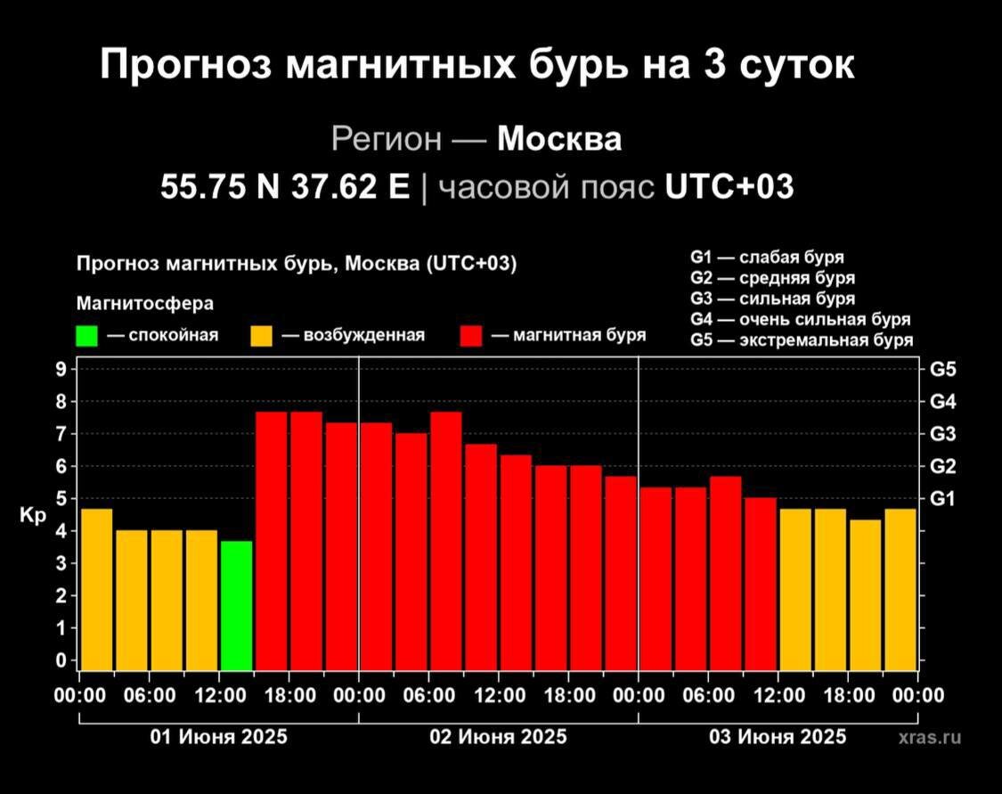 Самая сильная магнитная буря в 2025 году! Сегодня ночью произошел крупный выброс солнечной массы, направленный прямо к Земле. Это результат вспышки уровня M8.2, случившейся в 03:05 по мск. Источник выброса находился почти в центре солнечного диска, поэтому он неизбежно достигнет нашей планеты. Ожидается самая мощная серия магнитных бурь в году с пиком до G4. Солнечная плазма прибудет к Земле вечером 1 июня. Метеозависимые, будьте готовы! Тем, у кого есть доступ к моим медитациям, рекомендую их послушать — это поможет легче перенести этот период.