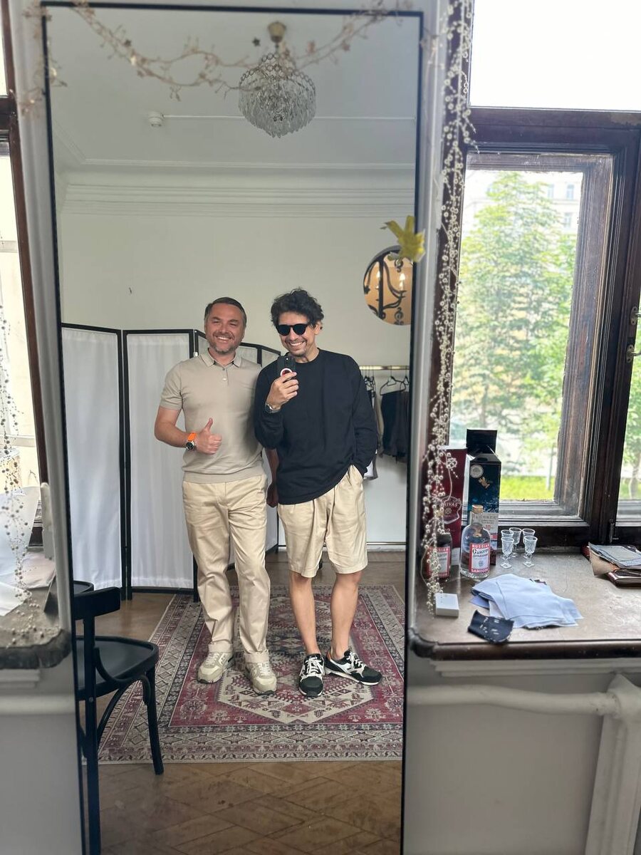 А это мы с Дмитрием в брюках 2.0 и шортах 1.0 цвета шампань 🥂