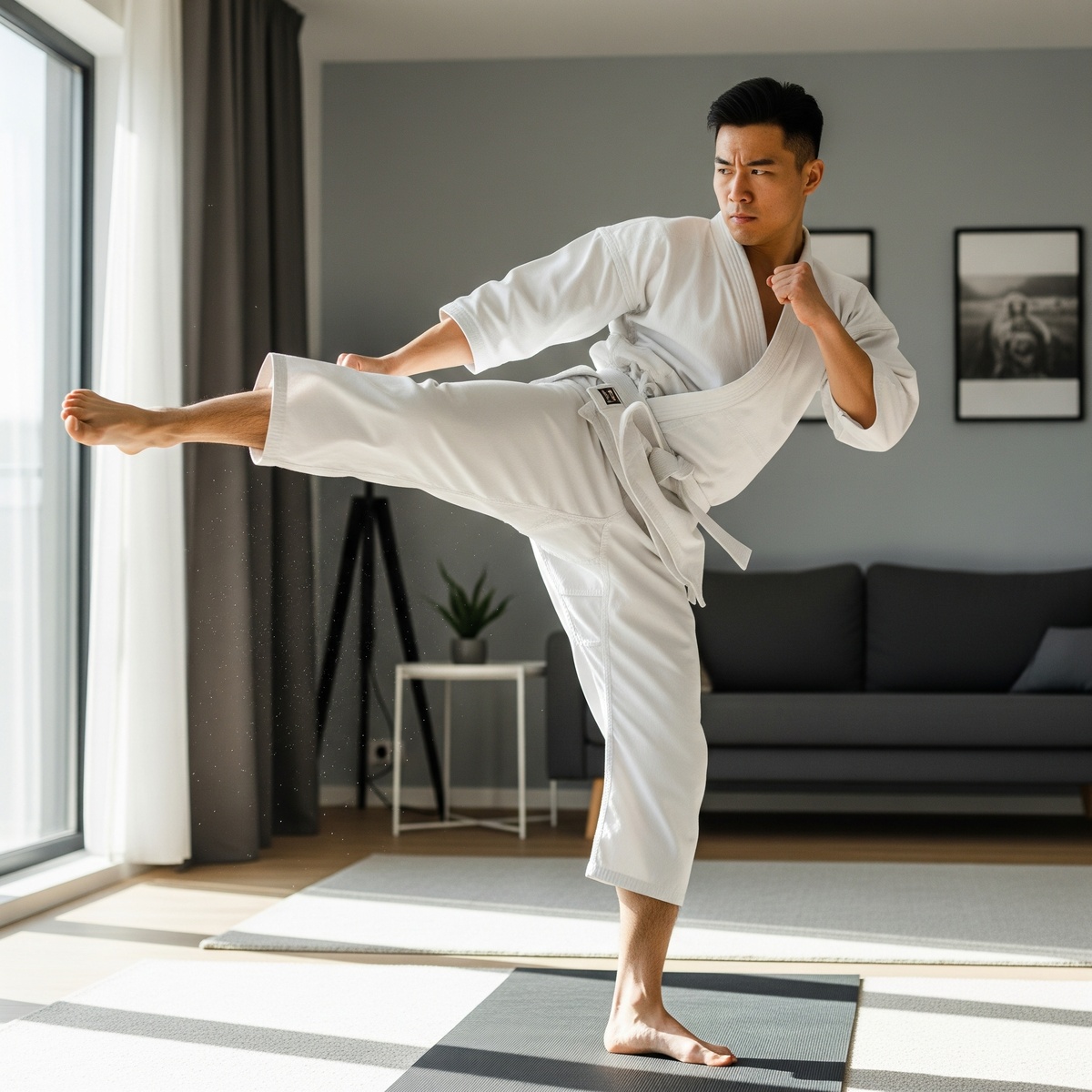 - Координация и баланс: Выполняйте стойки из боевых искусств, перемещения, уходы от воображаемых ударов. Поработайте над балансом на одной ноге.