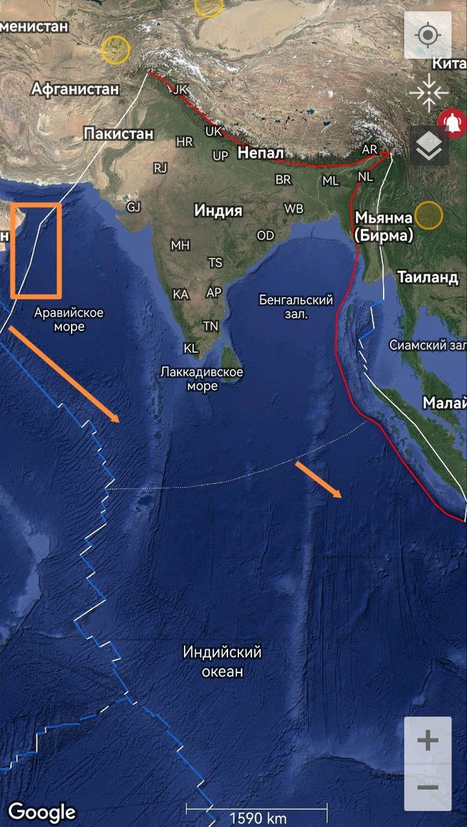 Сегодня наблюдались ОСТИ в Индийском океане и Аравийском море (иногда свидетельствуют о подготовке сильного землетрясения на обрамлении