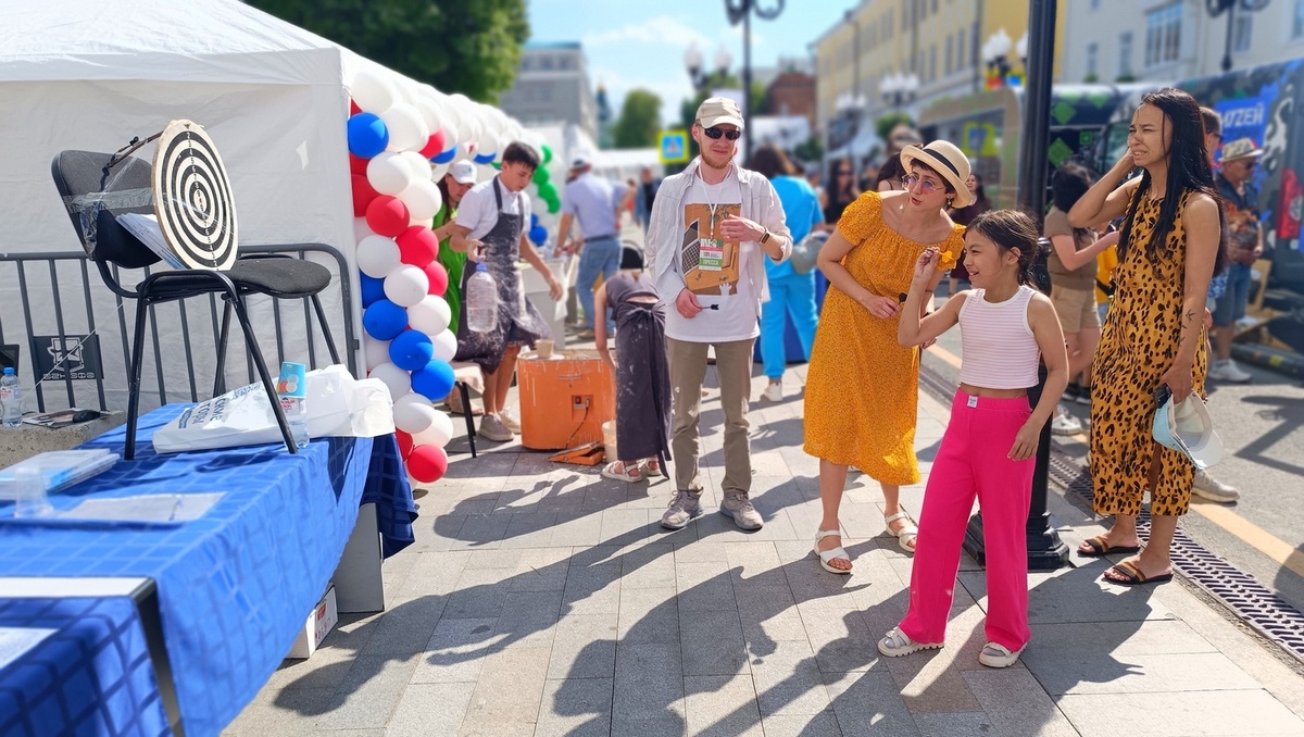 Сегодня редакция журнала «Бельские просторы» в шатре Дома печати порадовала посетителей кроссвордами. Особенно запомнился участникам кроссворд по стихотворениям детского писателя и поэта Сергея Михалкова. И также был полюбившийся всем дартс, без него не обошлось. Вновь свистели пули, то есть дротики, что попадали прямо в цель. За удачные выстрелы-броски победители получали призы. Но жара, однако... побуждала к ещё большим активностям. Международную книжную ярмарку "Китап-Байрам" никакая погода не испортит. Фото: Алексей Чугунов