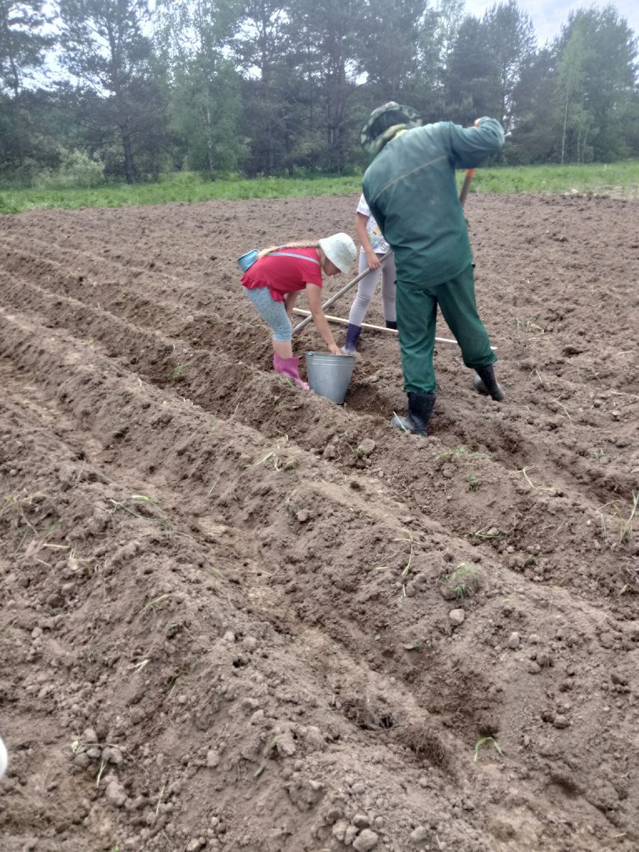 Вчера наконец-то посадили картошку🥔🥔🥔 Неделя жары, а в поле земля еле просохла. Успели как раз до новых дождей💦💦) В этом году решили сажать в холмы, т.к. земля очень плотная, суглинистая. И место очень влажное, но при сильной жаре земля превращается в каменную корку. Причем в 20-30 метрах находятся грядки также распаханные в прошлом году, но почва на них более песчаная🤷♂ В таких условиях лучше не заглублять клубни в землю, а использовать голландский метод посадки. Вообщем пробуем) Как только земля немного подсохла, за пару дней подготовили участок под посадку картофеля🥔🥔 и нарезали холмы. Вчера достаточно быстро посадили картофель🥔. Дети активно помогали несмотря на жару!)