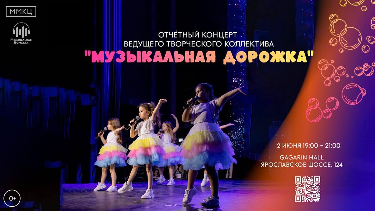 🎤✨ Приглашаем на яркий и душевный отчётный концерт ведущего творческого коллектива "Музыкальная Дорожка"! 🌈 Вас ждёт море эмоций, яркие номера, талантливые дети и настоящая атмосфера праздника! 📅 2 июня 🕖 19:00 – 21:00 📍 Gagarin Hall, Ярославское шоссе, 124 💫 Не пропустите — будет красиво, трогательно и музыкально! 🎟 Вход свободный | Возраст: 0+