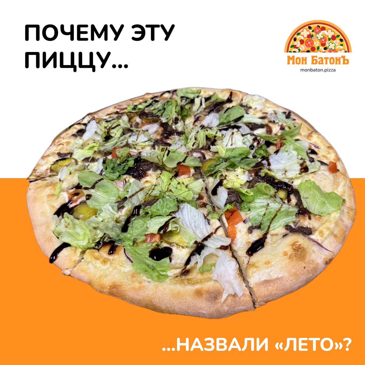 Зелёная трава, ярчайшее солнце, зной и небольшая прохлада в тени. Лето — оно прекрасно! Память об этом времени года согревает нас даже в холода. Летом мы больше гуляем, чаще смотрим на солнце. У нас больше планов! Больше встреч! Больше улыбок! Лето — это ярчайшие воспоминания и жажда новых впечатлений. Это поистине волшебное время года. И именно этим временем года вдохновлён был шеф-повар “Мон БатонЪ”, когда создавал рецепт этой пиццы! Сама пицца и визуально, и вкусом похожа на то самое лето, в которое хочется возвращаться. У каждого есть такое лето. То самое. А может, именно это лето — то, в которое будет хотеться вернуться? Как заказать пиццу «Лето «Мон БатонЪ»: Сайт для заказа: monbaton.pizza Телефон: +79804042626 ЗАКАЗАТЬ НА САЙТЕ ЯНДЕКС.ОТЗЫВЫ ГРУППА ВК ТЕЛЕГРАМ